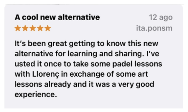 Con esos minutos, Juan decide aprender algo que siempre quiso: tocar el piano. Encuentra a otra persona en la app dispuesta a enseñarle, y paga con los minutos que ya ha generado.